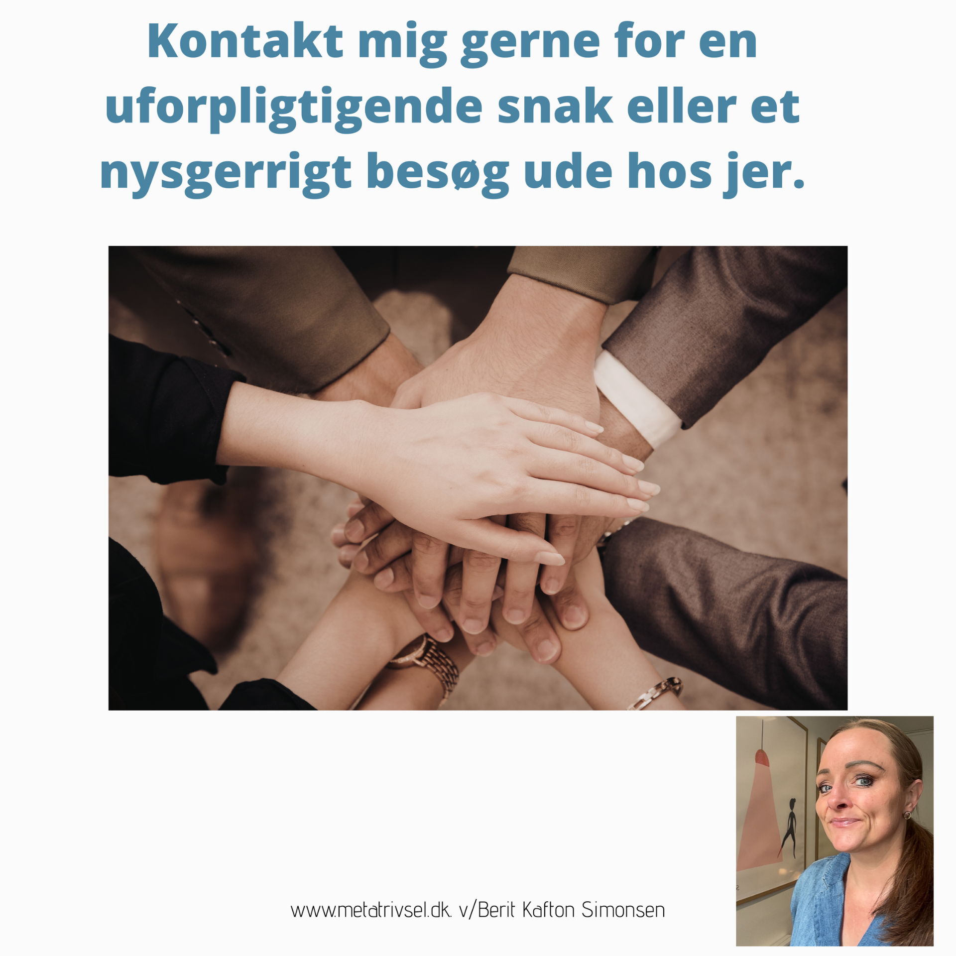Er du/ I klar til at skabe trivsel og mental sundhed som en kapacitet og bevidst kompetence hos jer, så tøv ikke med at tage kontakt, jeg kommer også gerne ud til en uforpligtigende snak om hvad der kunne gøres hos jer.